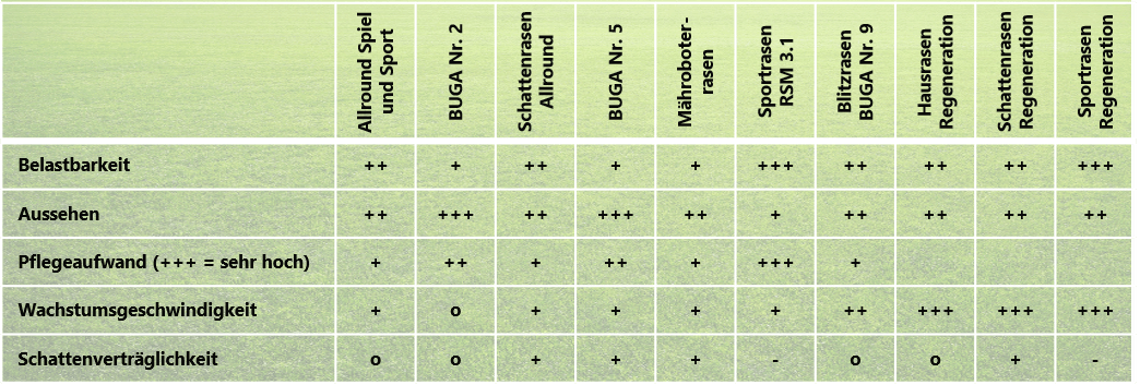 Übersicht über alle Rasensamen